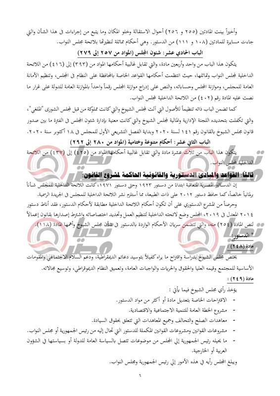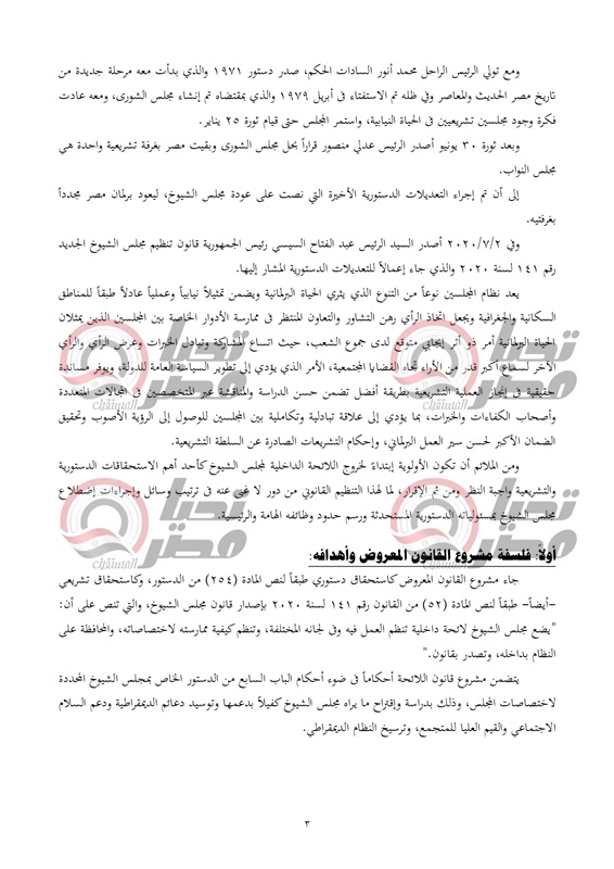 تحيا مصر ينشر نص تقرير تشريعية النواب عن لائحة مجلس الشيوخ المعروض علي البرلمان الأحد