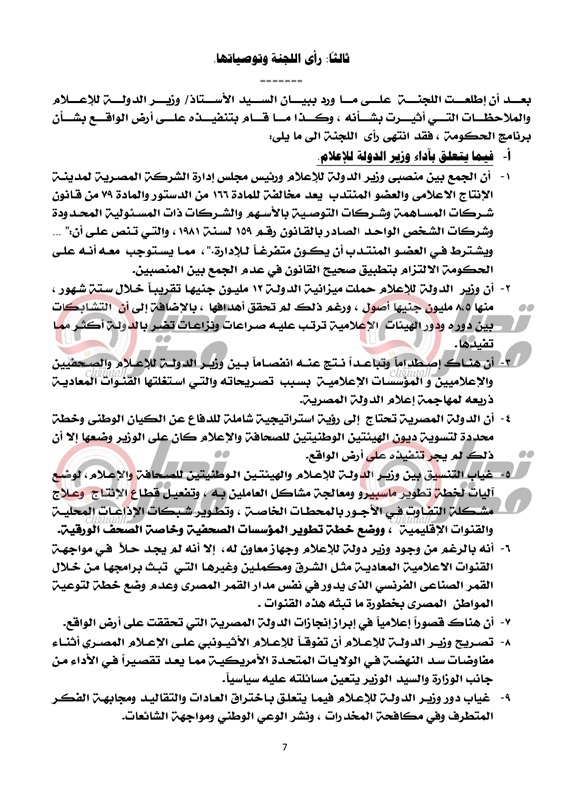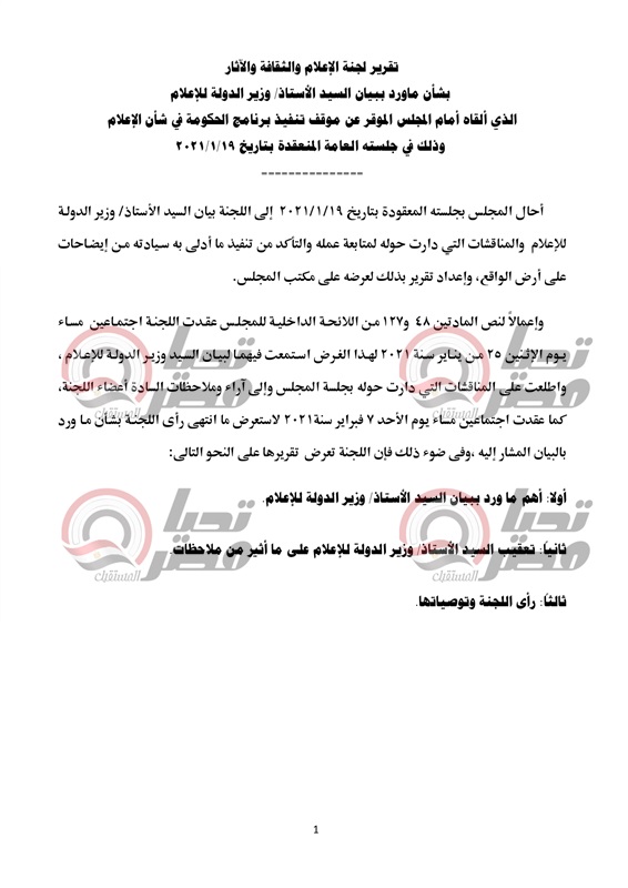 أيضا تقرير لجنة الإعلام والثقافة والآثار،