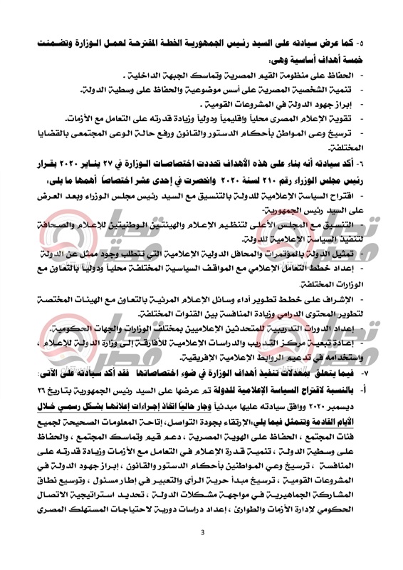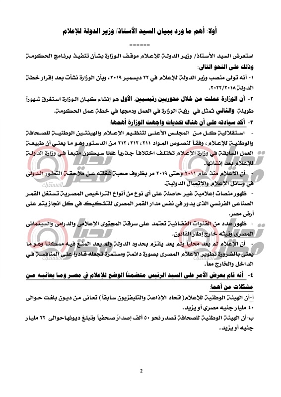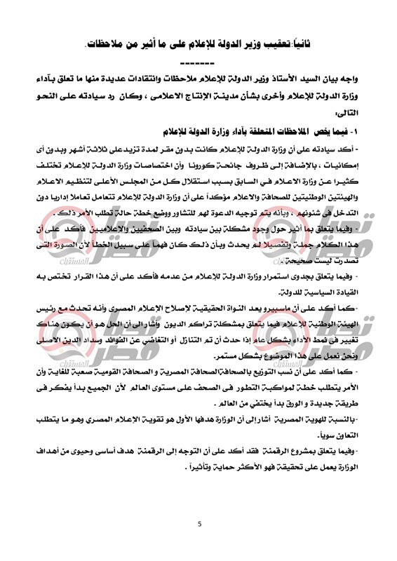 رفض ما ورد ببيان وزير الدولة للإعلام