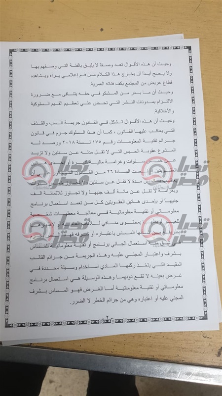 وأشارت النائبة فى البلاغ إلى تصريحات تامر أمين، التى تطرق فيها لتشويه صورة الصعيد والريف قائلا: ان الأهالى فى الريف والصعيد بيخلفو العيال علشان يصرفو عليهم ويكون الأطفال فى سن من 6إلى7 سنوات، مشيرا إلى أن الأطفال بيروحو للعمل فى ورش، والبنات يتشحنوا للعمل إلى القاهرة للعمل خادمات فى البيوت هذا ماجاء على لسان المشكو فى حقه تامر أمين من خلال البرنامج الذى يقدمه على قناة النهار .واوضحت النائبة ألفت المزلاوى فى بلاغها لنائب العام إلى ان هذه الأقوال تعد وصفا لا يلقيق بالفئة التى وصفهم بها،ولا يصح أن يخرج هذا الكلام من فم إعلامی ،يراه ويشاهده شريحة عريضة من المجتمع بكافة فئاته ، إضافة إلى أن هذا يتنافى مع معايير النشر التى تحض على الإلتزام بالقيم الإخلاقية مؤكدة على أن هذه الأقوال تشكل في القانون جريمة السب والقذف والتي يعاقب عليها القانون ،حيث يقع هذا السلوك كجرم فى قانون جرائم تقنية المعلومات ، حيث تترواح العقوبة عليه بالحبس من سنتين ولا تزيد عن خمس سنوات أو غرامة مالية كبيرة أو تنفيذ آحدى العقوبتين.