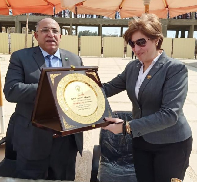 وقدم نقيب مهندسين القاهرة، لواء مهندس، هشام أبو سنة، درع تكريم النقابة إلى المهندسة إيمان العجوز، تقديرا لمجهودها وتميزها الذي ساهم في تعيينها بمجلس النواب.