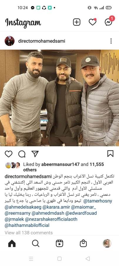 نشر محمد سامي صورة برفقه السقا وتامر حسني، من داخل مكتبه عبر حسابه الرسمي على موقع تبادل الصور والفيديوهات الشهير " انستجرام"، وأرفقها مع تعقيب له ليكشف عن مفاجأة غير متوقعة، قائلًا: "تكتمل كتيبة نسل الأغراب بنجم الوطن العربي الأول.. النجم الكبير تامر حسني، وش السعد".