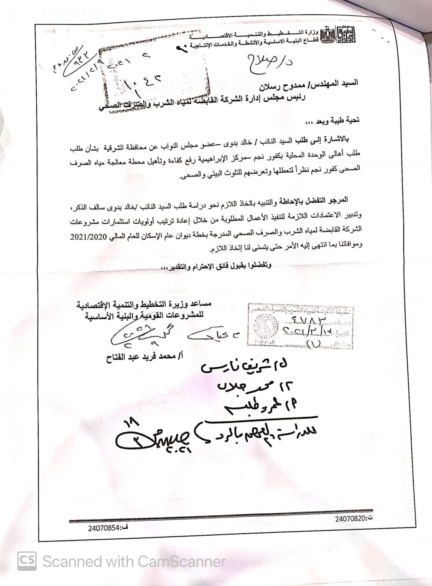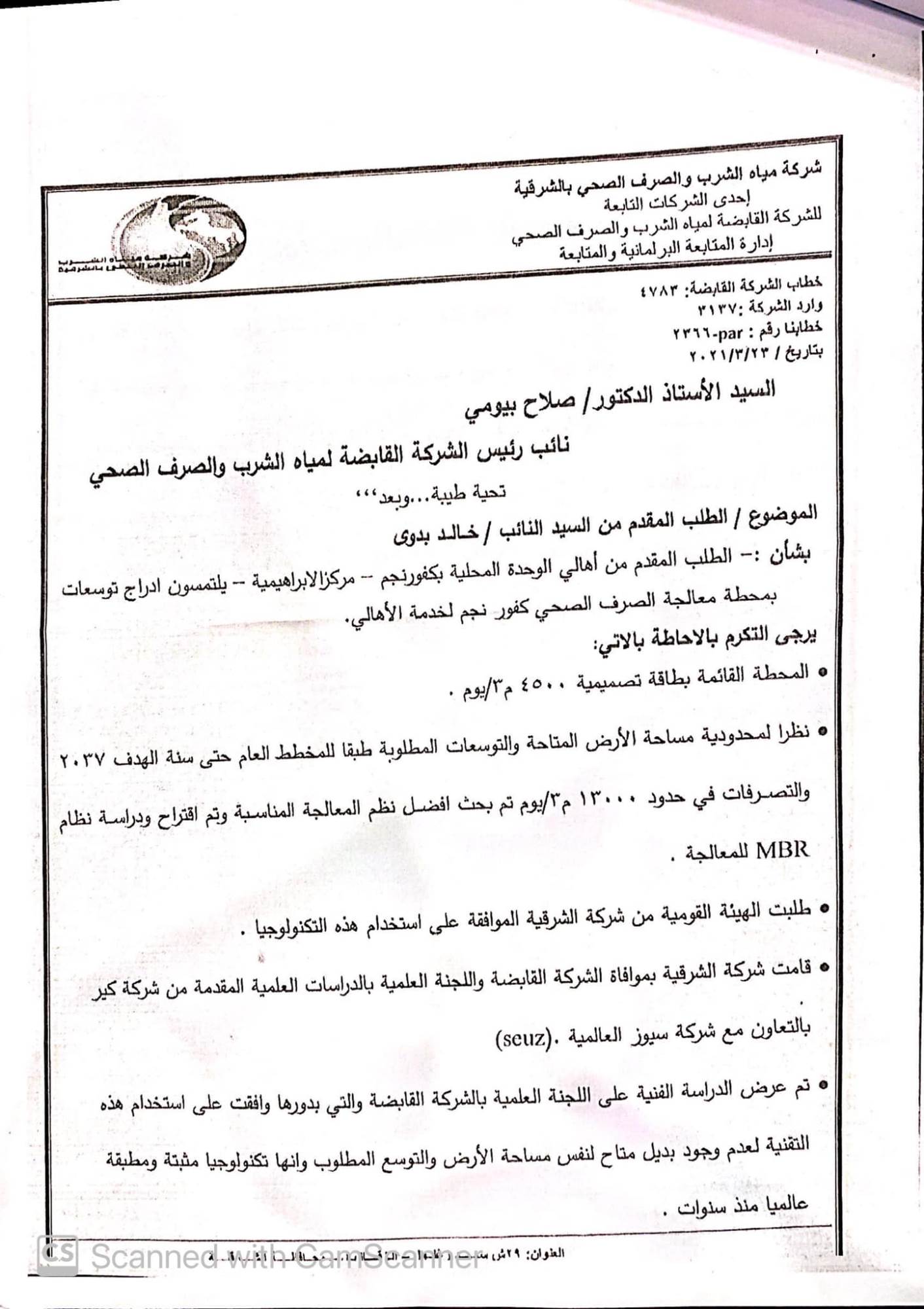 خالد بدوي يحصل على موافقة توسعة محطة معالجة «كفور نجم»