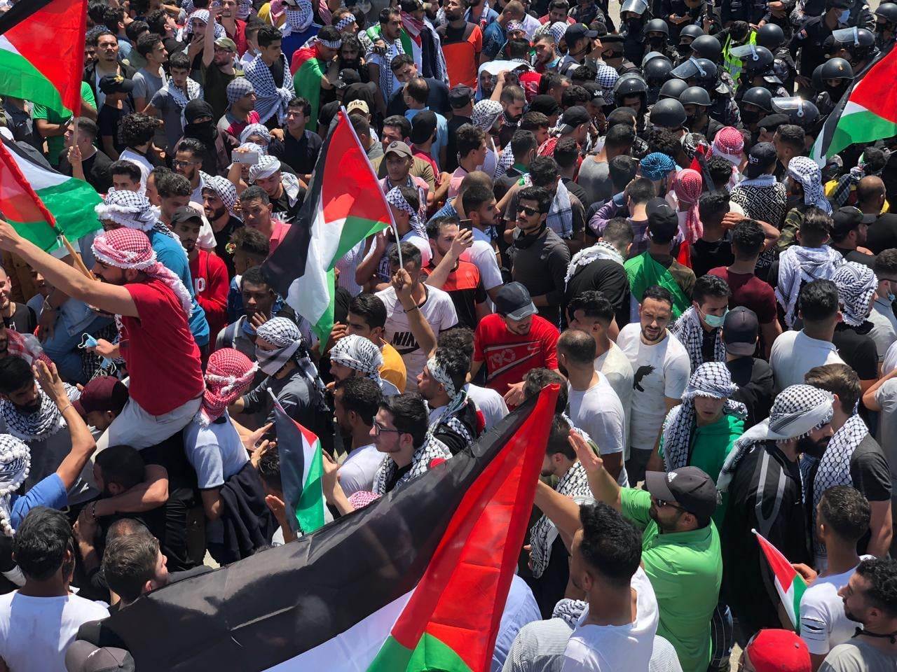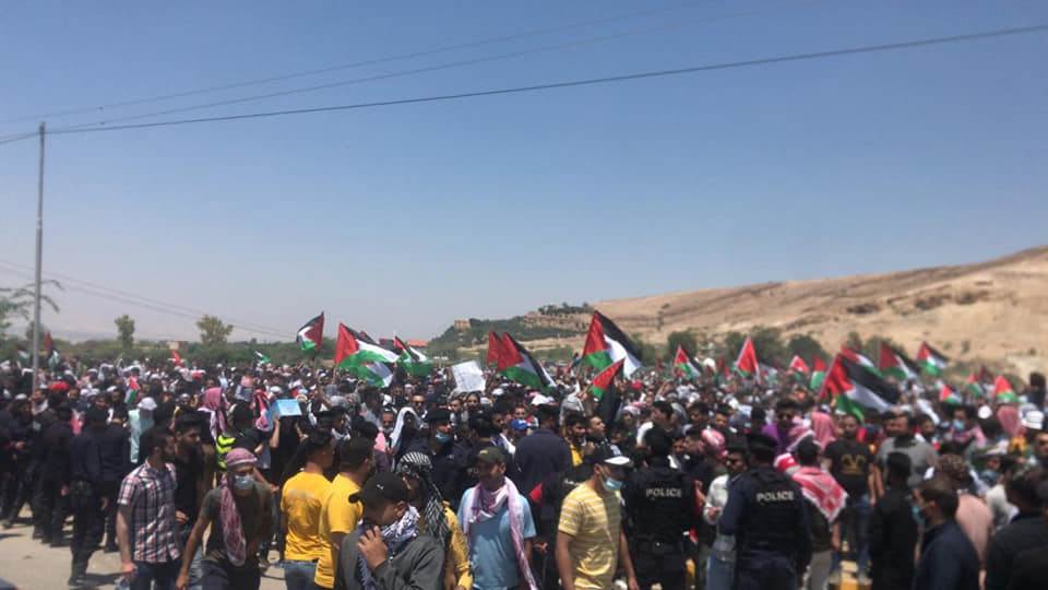 واحتشد آلاف من الأردنيين، قرب الحدود الأردنية مع الأراضي الفلسطينية المحتلة في مظاهرة عارمة ضد الاحتلال الاسرائيلي والعدوان على غزة والانتهاكات في القدس.