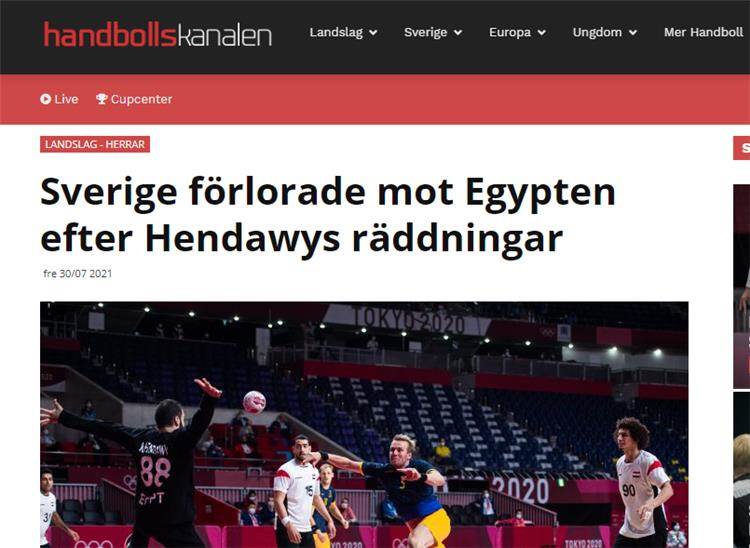 وواصلت موقع handbolls kanalen: "السويد تخسر أمام مصر بسبب تصديات هنداوي".