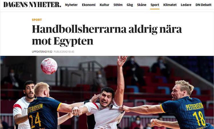 وعنونت صحيفة Dagens Nyheter (أخبار اليوم السويدية): "أسياد اليد لم يقتربوا حتى من مستوى مصر".