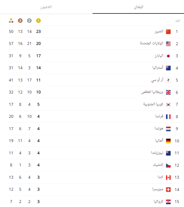 جدول ميداليات أولمبياد طوكيو 2021