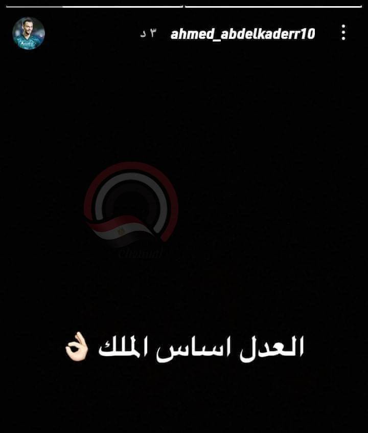 وكتب أحمد عبدالقادر عبر الإنستغرام : " العدل أساس الملك " ، الأمر الذي أعتبره الأمر بمثابة «شماتة وسخرية» من انضمام عبدالرحمن مجدي لصفوف المنتخب الأولمبي بدلا من عبدالقادر.