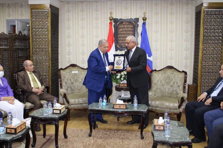 وفي الختام قام اللواء أ.ح. عبد المجيد صقر، بإهداء المستشار عصام المنشاوي رئيس هيئة النيابة الإدارية درع المحافظة، كما قام المستشار عصام المنشاوي بإهداء درع النيابة الإدارية للواء عبد المجيد صقر - محافظ السويس،