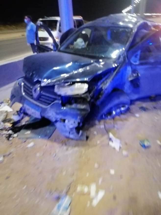 إصابة شرطى نتيجة اصطدام سيارته بعامود إنارة بطريق القاهرة السويس.. تفاصيل «صور»