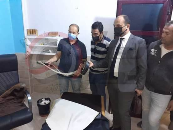 وتم ضبط جهاز مساج وأدوات خاصة بالعلاج الطبيعى يقوم المذكور باستخدامها على المرضى وهو غير مؤهل لذلك، و كمية كبيرة من كاسات الحجامة ومشد للرقبه وتم تحريزهم من إدارة العلاج الحر.