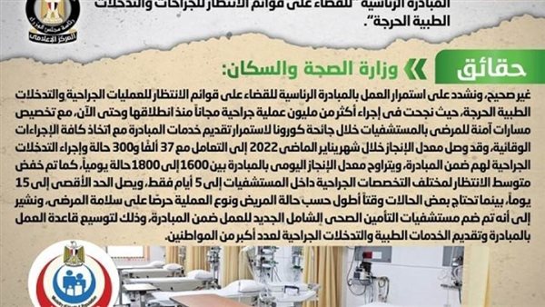 حقيقة توقف المبادرة الرئاسية «القضاء على قوائم الانتظار للجراحات والتدخلات الطبية الحرجة»