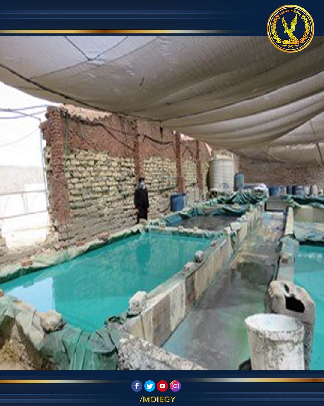 أكدت معلومات وتحريات قطاع الأمن العام بالإشتراك مع إدارة البحث الجنائى بالإدارة العامة لشرطة البيئة والمسطحات بقطاع الشرطة المتخصصة قيام بعض الأشخاص بإقامة (مصانع- مخازن) غير مرخصة فى مجال مستلزمات الإنتاج وتداول المخصبات الزراعية المغشوشة والمقلدة، وكذا تصنيع وتعبئة غراء الأخشاب من جلود الحيوانات وتعبئة وتداول المواد الغذائية والمنتجات التى تنتج بإستخدام مواد مجهولة المصدر وبدون ترخيص بنطاق محافظة القليوبية.