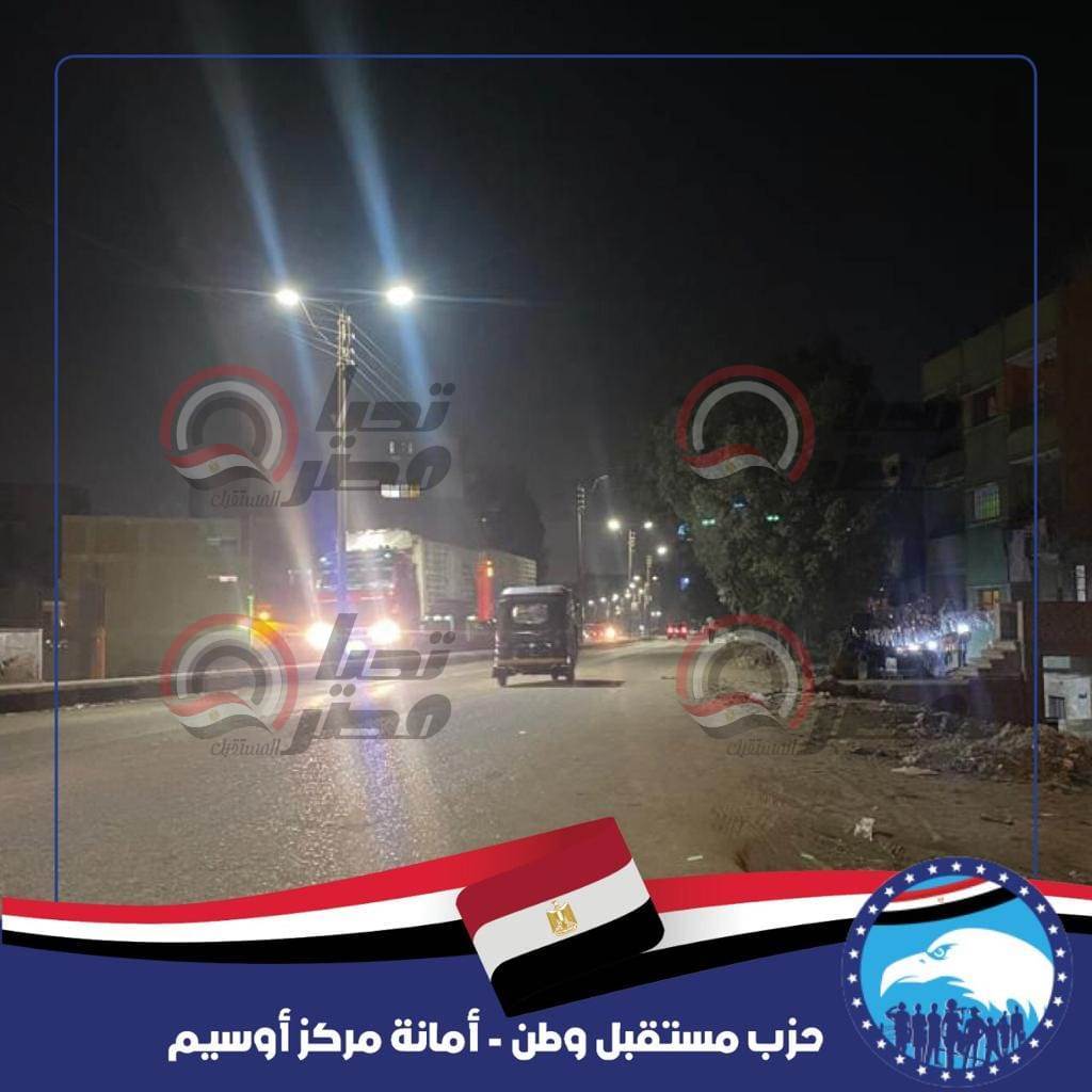 شاركت أمانة الحزب بأوسيم في إنارة الشوارع الرئيسية بقرى المركز ، و1لك يأتي تحت رعاية المستشار عبدالوهاب عبدالرازق رئيس الحزب، وتنفيذاً لتوجيهات النائب أشرف رشاد الأمين العام والنائب الأول لرئيس الحزب، وتحت إشراف النائب عادل ناصر أمين الحزب بمحافظة الجيزة والنائب عبدالوهاب خليل نائب رئيس الهيئة البرلمانية للحزب أمين تنظيم بالمحافظة، و إنطلاقاً من الدور المجتمعي لحزب “مستقبل وطن”.