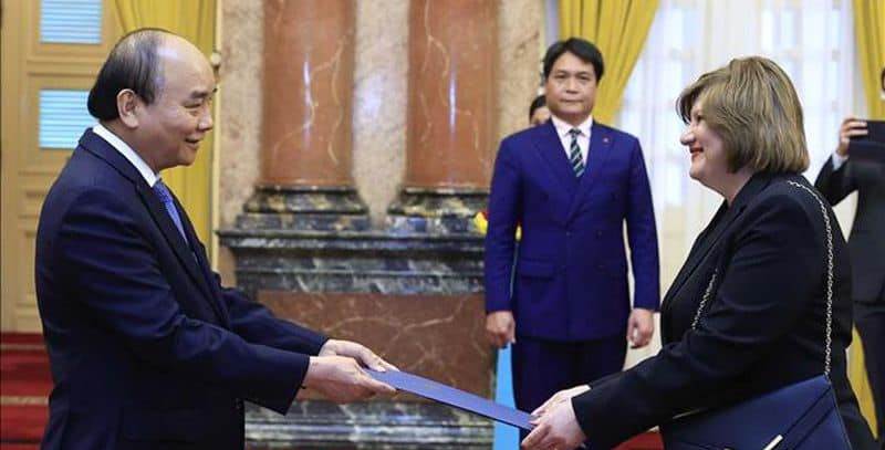 قدمت السفيرة المصرية أمل عبد القادر سلامة أوراق اعتمادها إلى رئيس جمهورية فيتنام الاشتراكية "نوين سوان فوك"، حيث نقلت إلى الرئيس الفيتنامي تحيات رئيس الجمهورية عبد الفتاح السيسي، مؤكدةً على اعتزاز مصر بالصداقة التي تجمعها مع فيتنام، وتطلعها إلى التعاون مع المسئولين الفيتناميين لمواصلة تعزيز العلاقات المتميزة بين البلدين في مختلف المجالات السياسية والاقتصادية والثقافية.