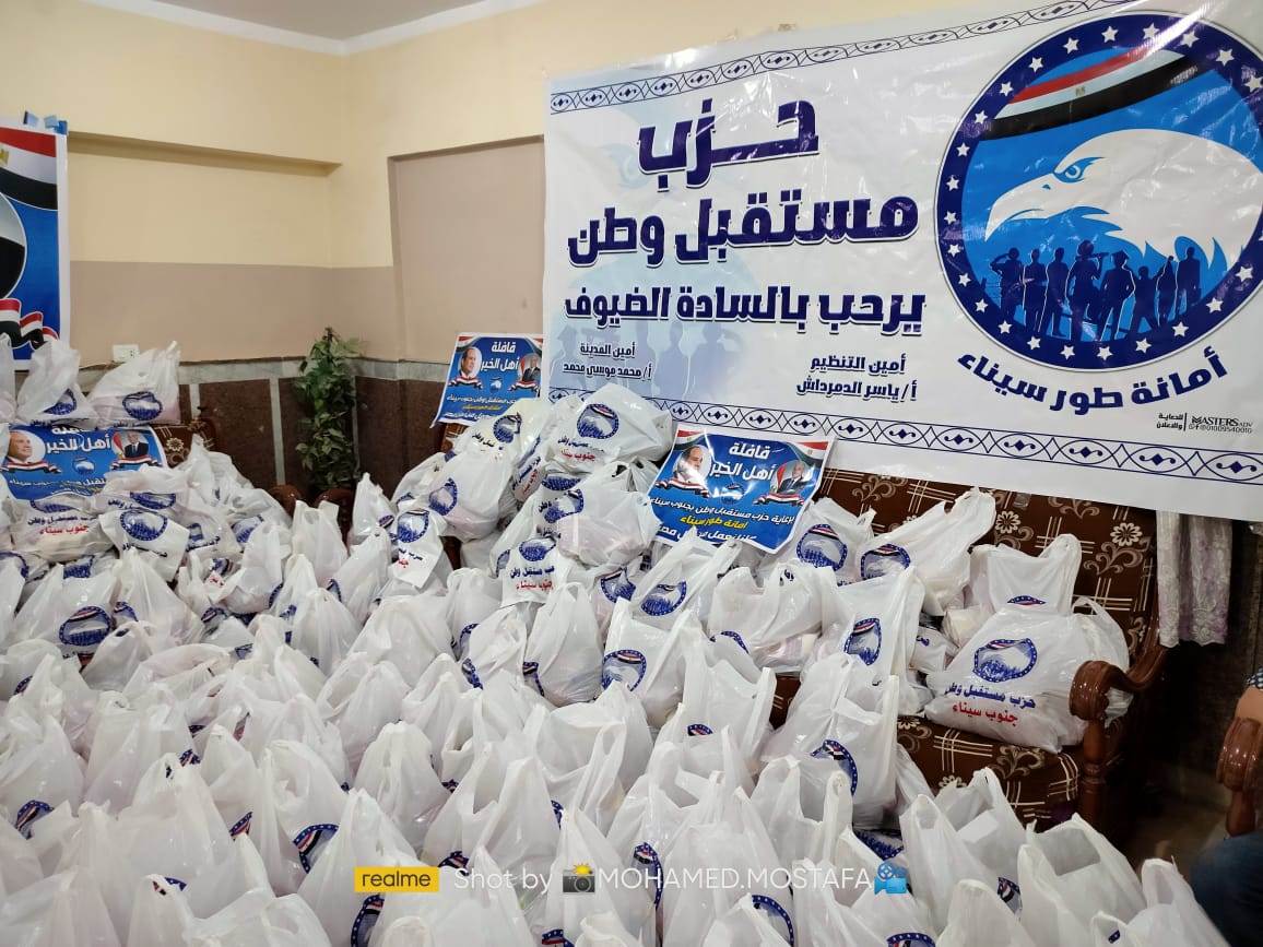 وفي محافظة جنوب سيناء، واصلت أمانة الحزب بمدينة طور سيناء، توزيع مساعدات المواد الغذائية واللحوم العينية على المواطنين في القري الأكثر احتياجاً بالمركز، ضمن قافلة "أهل الخير"، وتواصل الأمانة عملية التوزيع خلال الأيام القادمة وحتى انتهاء شهر رمضان المبارك، ومن جانبه، وزعت أمانة مدينة أبو زنيمة، عدداً من شنط المواد الغذائية العينية، بمختلف المناطق بالمدينة، وتستهدف الأسر الأكثر احتياجاً رمضانياً لتوزيعها علي الأهالي والأسر الأكثر احتياجاً.