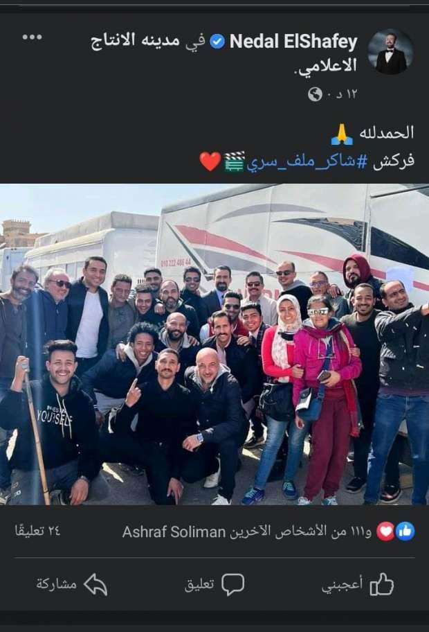 ومن جانبه شارك الفنان نضال الشافعي متابعيه وجمهوره بنشره صورة من آخر يوم تصوير لمسلسل ملف سري وذلك عبر صفحته الرسمية بموقع التواصل الاجتماعي “فيسبوك”.