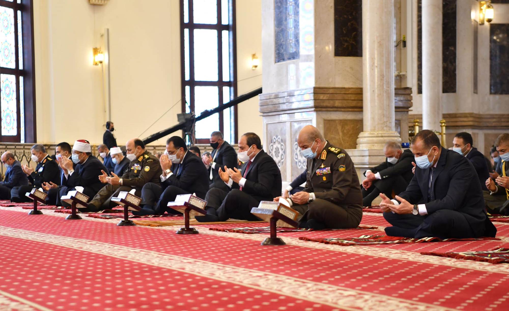 أدي الرئيس عبـد الفتـاح السيسـى يـؤدى صـلاة الجمعـة بمسجد المشير طنطـاوى ويلتقـى عـدد مـن قـادة القوات المسلحة عقـب آداء الصلاة بمناسبة ذكرى إنتصـارات العاشر من رمضان".