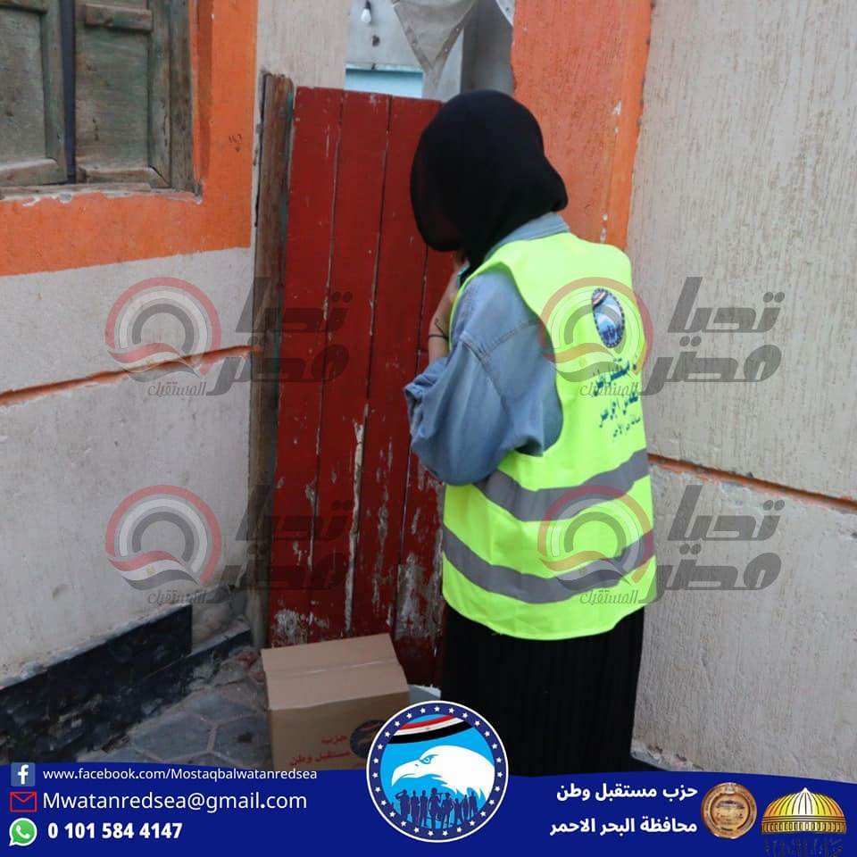 وفي محافظة البحر الأحمر،وزعت أمانة الحزب بالمحافظة، كميات كبيرة من الحقائب الرمضانية والدعم الغذائي للأسر الأولى بالرعاية والأكثر احتياجًا في مدينة الغردقة وذلك ضمن المرحلة الاولي من التوزيع التي ضمت توصيل الحقائب والدعم الغذائي الي الأيتام والأرامل وذوي الاحتياجات الخاصة وأسر العمالة غير المنتظمة والأكثر احتياجا والأولى بالرعاية، ومن جانبه، واصلت أمانة الحزب بالمحافظة، تنفيذ مبادرة "افطار صائم" والتي كان قد أطلقها الحزب مع بداية شهر رمضان المبارك وانطلقت فعالياتها من مدينة رأس غارب.