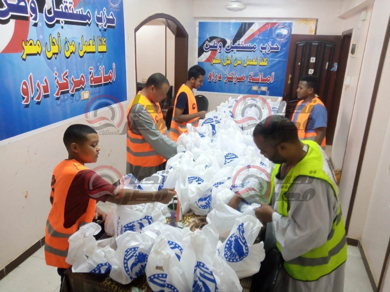 وفي محافظة أسوان،تواصل أمانة مركز دراو إعداد وتجهيز وجبات الإفطار حيث يشارك عدد كبير من شباب الحزب في الإعداد والتجهيز اليومي الي جانب خدمة التوصيل والتوزيع في أماكن التجمعات والشوارع الرئيسية والأحياء المجاورة للمدينة، وتستمر الفاعلية طوال أيام شهر رمضان المبارك، كما تستكمل أمانة مركز إدفو، معرض "أهلا رمضان"، لبيع السلع الاستهلاكية بأسعار مخفضة، وتوفير الاحتياجات الأساسية للمواطن ودعم الدولة فى توفير الرعاية والخدمة للمواطن.
