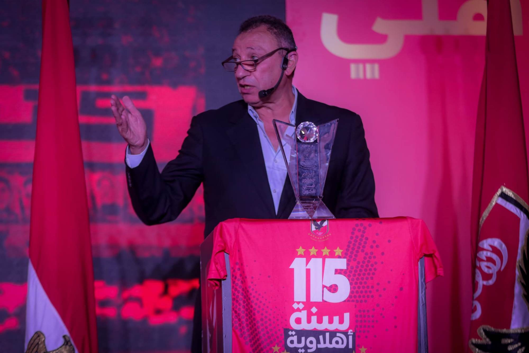 وقال الخطيب: النهارده في تكريم من نوع خاص، غالي وعزيز عليا شخصيًا لإني عشته وحاسه، تكريم لصاحب الفضل بعد ربنا علينا، أجيال كتير تعاقبت على الأهلي لكن العنصر الأساسي والمستمر كان جمهور النادي الأهلي، وهو صاحب الفضل فيما وصل إليه الأهلي من إنجازات.
