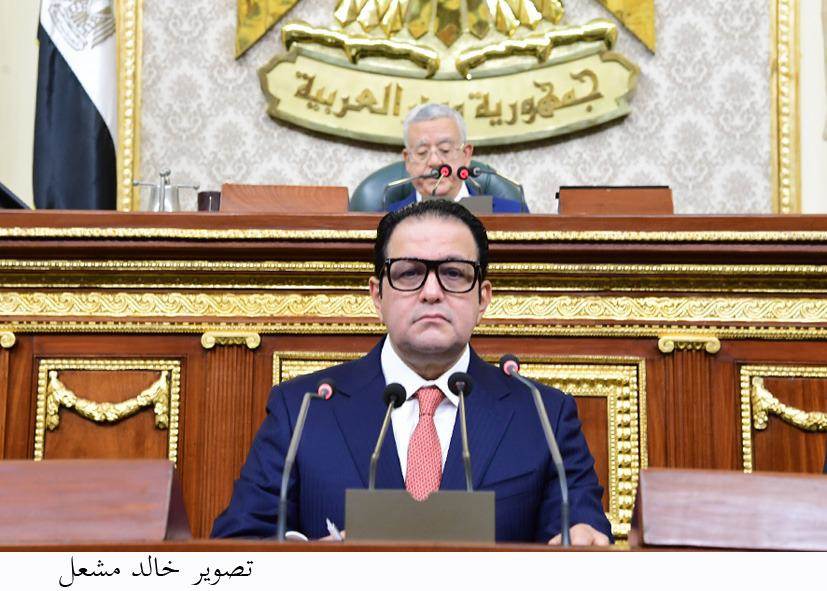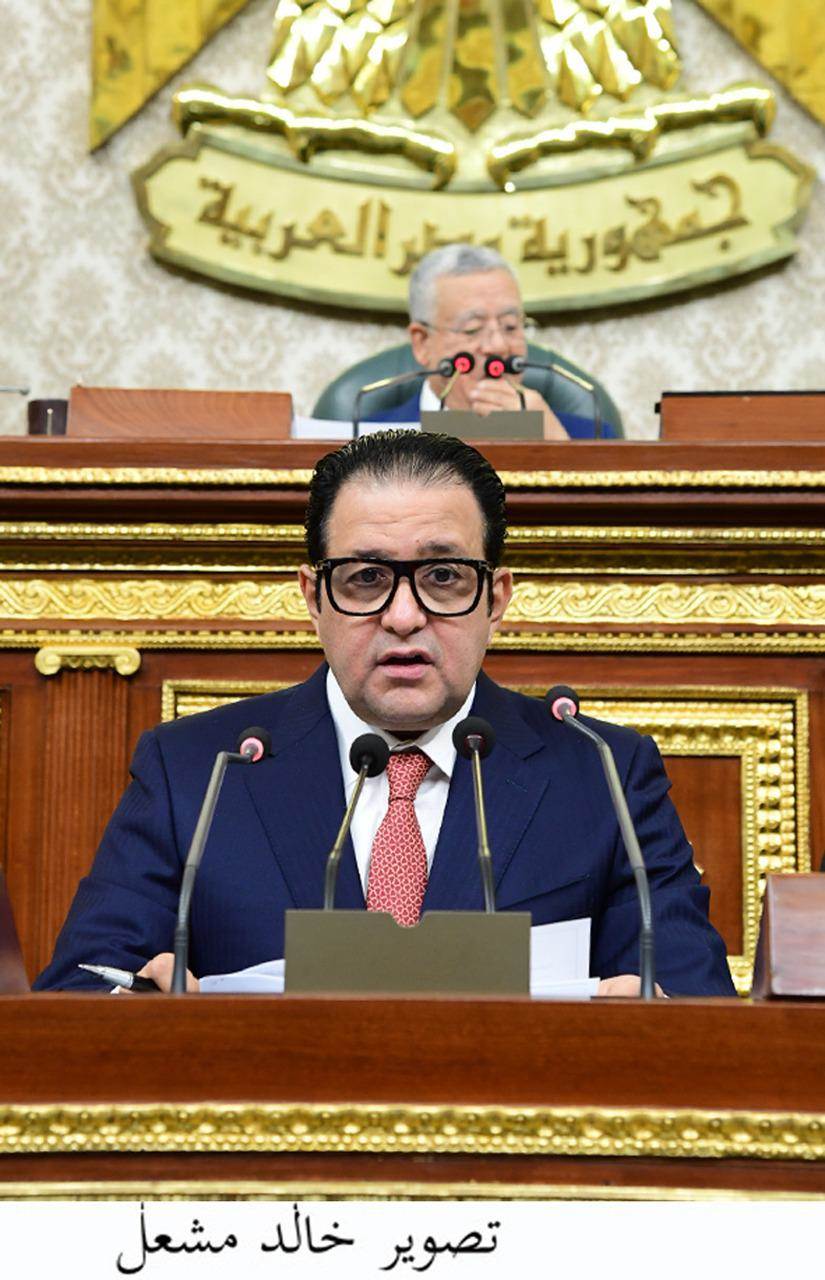 علاء عابد يستعرض أمام الجلسة العامة تقرير حول منح بناء وتشغيل محطة حاويات بميناء دمياط لشركات مساهمة