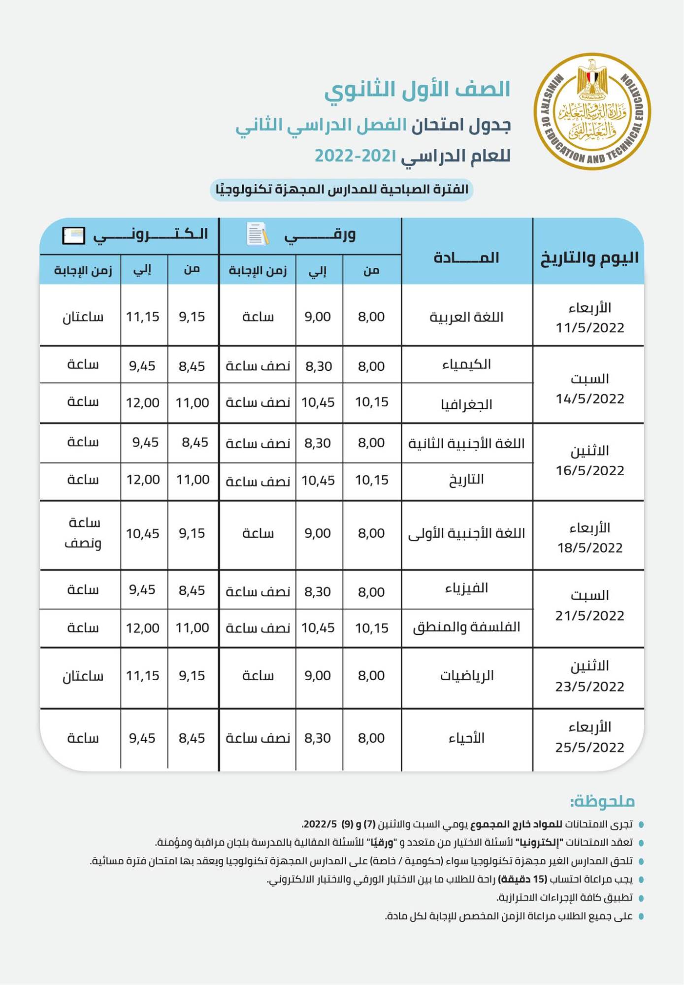 ستكون ورقية وإلكترونية...ننشر جدول امتحانات الصفين الأول والثانى الثانوي