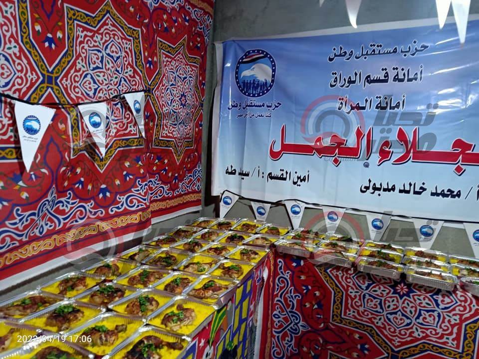 وقامت أمانة حزب مستقبل وطن بالوراق برئاسة سيد طه وأمين التنظيم محمد خالد مدبولي وبرعاية أمينة المرأة نجلاء الجمل، بعمل 150 وجبة إفطار ساخنة وتوزيعها على الأرامل والأيتام والأسر الأكثر احتياجًا.