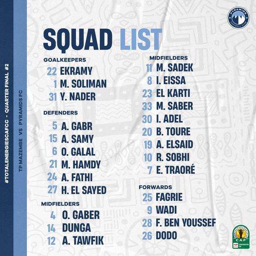 قائمة بيراميدز أمام لمواجهة مازيمبي في الكونفيدرالية الأفريقية
