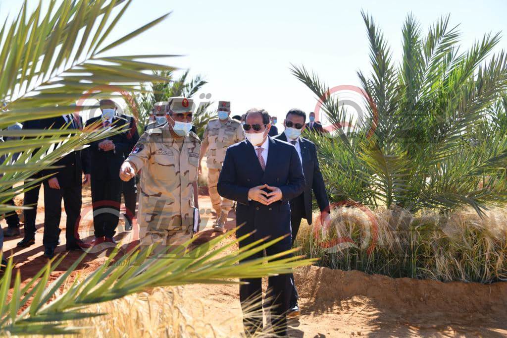 تفقدالرئيس عبد الفتاح السيسي الخميس منطقة توشكي بجنوب الوادي بمحافظة أسوان، كما شهد بدء موسم حصاد القمح، وذلك في إطار جهود الدولة لإنشاء مجتمعات زراعية متكاملة لها مردود وعوائد اقتصادية كبيرة، وتدعم الأمن الغذائي وزيادة الصادرات، وتحقق طفرة زراعية، فضلاً عن توفير الآلاف من فرص العمل فى اطار نهضة تنموية شاملة.