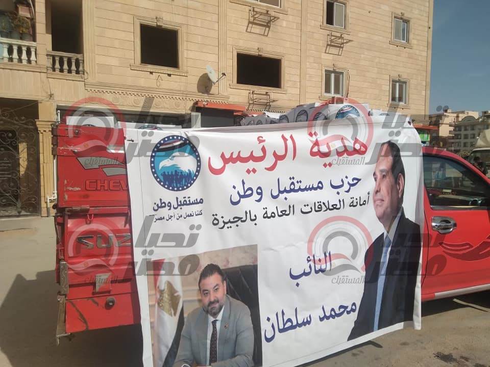 واصل النائب محمد سلطان حملته الموسعة لتوزيع هدية الرئيس احتفالًا بشهر رمضان الكريم، ويأتي ذلك استكمالًا للدور المجتمعي لحزب مستقبل وطن وهيئته البرلمانية، تحت رعاية المستشار عبد الوهاب عبد الرازق رئيس الحزب، وتنفيذًا لتوجيهات المهندس أشرف رشاد زعيم الأغلبية الأمين النائب الأول لرئيس الحزب، وتحت إشراف النائب عادل ناصر أمين الحزب بمحافظة الجيزة والنائب عبد الوهاب خليل نائب رئيس الهيئة البرلمانية للحزب أمين التنظيم بالمحافظة.