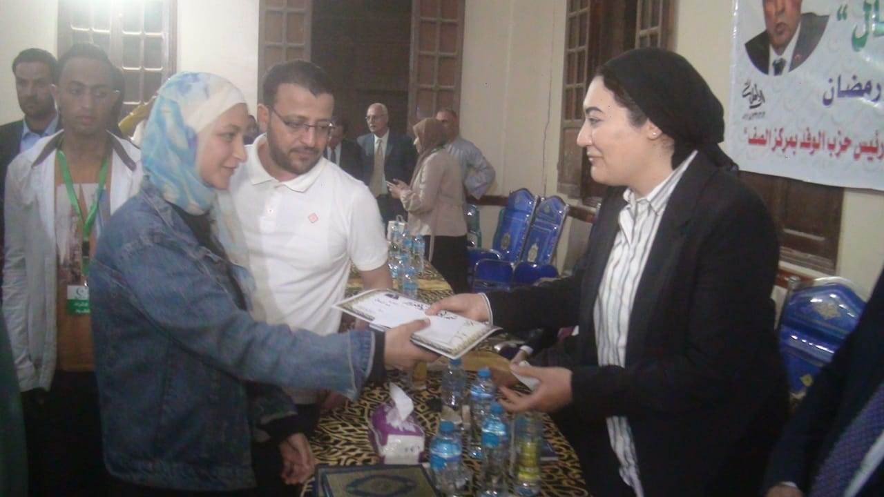 وفي نهاية الحفل قامت النائبة اسماء سعد الجمال بتكريم الفائزين في مسابقة حفظ القرآن الكريم من أبناء مركز ومدينة الصف، ومنحهم الهدايا وجوائز قيمة .
