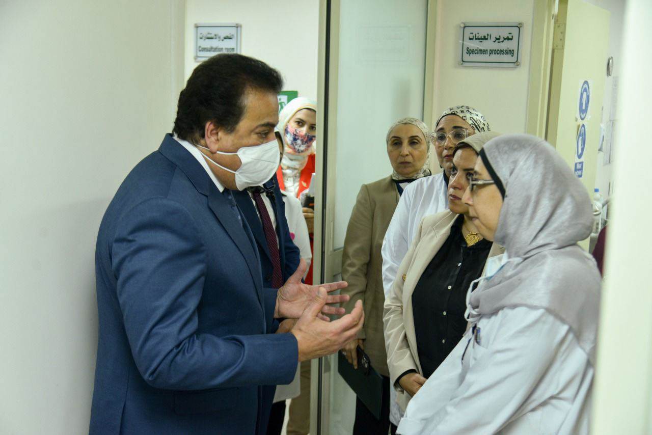 وأضاف «عبدالغفار» أن الوزير استمع إلى شرح مفصل بشأن إنشاء «عيادة تشخيص اليوم الواحد»، والتي من المقرر إنشاؤها خلال الفترة المقبلة ضمن اتفاقية بين الوزارة والمركز القومي للأورام بفرنسا (Gustave Roussy)، لتصبح الأولى في مصر لتشخيص أورام الثدي خلال 8 ساعات فقط، كما تفقد الوزير معمل الباثولوجي الخاص بمبادرة رئيس الجمهورية لدعم صحة المرأة، والحاصل على الاعتماد من كلية علم الأمراض الأمريكية "CAP" خلال شهر مارس الماضي، والذي تم تجهيزه بأحدث الأجهزة وفقاً للمعايير العالمية، ليصبح المعمل الوحيد المعتمد في مصر.
