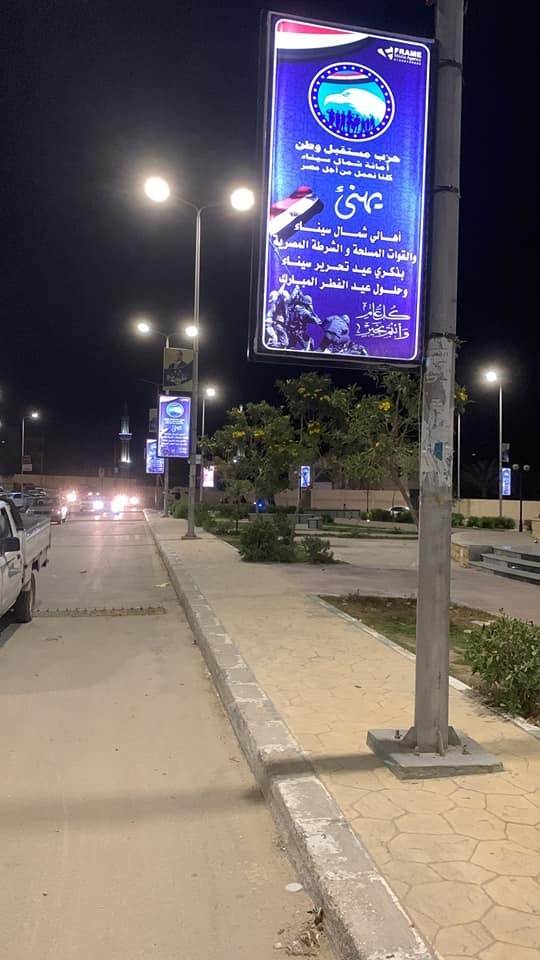 قامت أمانة الحزب بالمحافظة، بتزين ميادين وشوارع المحافظة، بلافتات ويافطات لتهنئة أهالي شمال سيناء الكرام والقوات المسلحة والشرطة المصرية الباسلة، بمناسبة ذكري عيد تحرير سيناء وقرب حلول عيد الفطر المبارك.