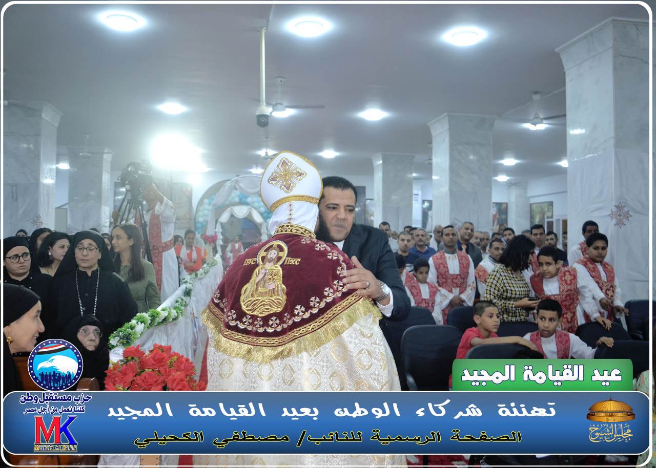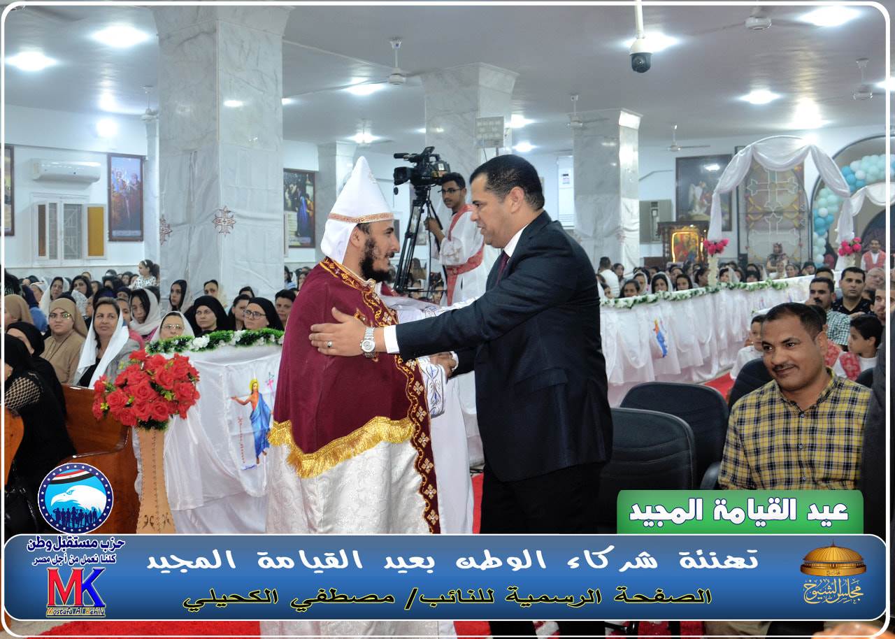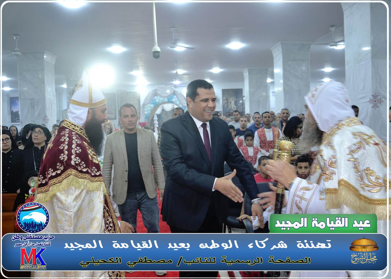 وأكد النائب مصطفى الكحيلى، أنة قد أرسل برقيات تهنئة إلى كل من قداسة البابا تواضروس الثاني بابا الإسكندرية، وبطريرك الكرازة المرقسية، وجميع رؤساء الطوائف والإخوة المسيحيين بأسيوط بمناسبة الأحتفال بعيد القيامة المجيد، فضلا عن زيارته للكنائس .