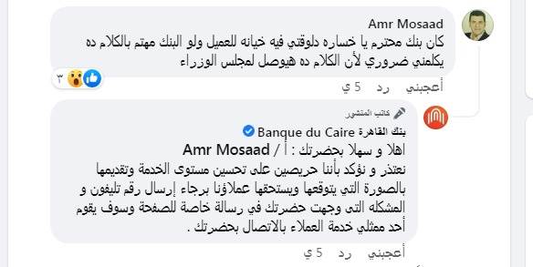 وقال أحد العملاء، بنك القاهرة كان بنك محترم، مرددًا :"يا خسارة الآن فيه خيانة للعميل ولو البنك مهتم بهذا الكلام يكلمني ضروري".