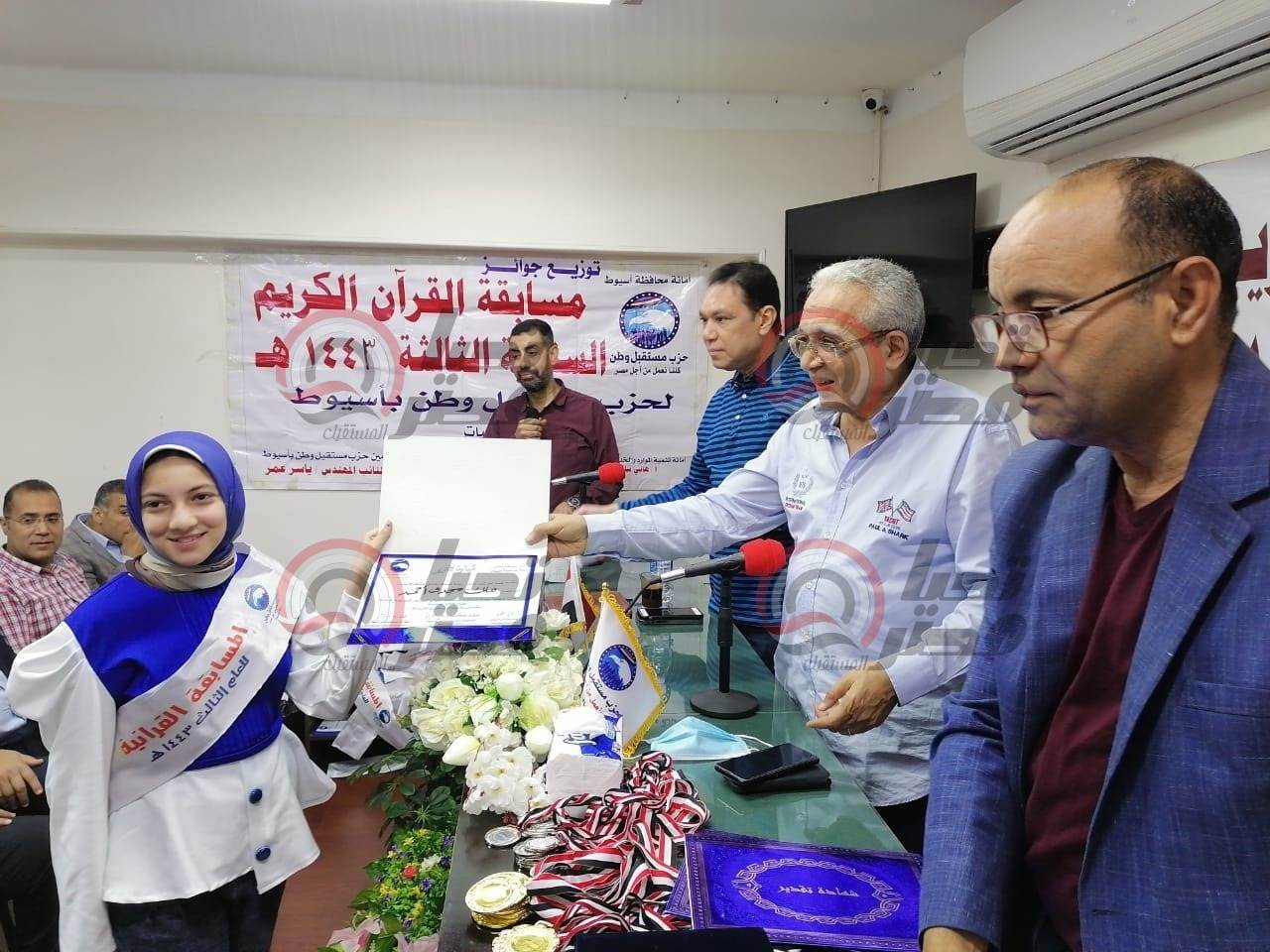 نظمت أمانة مركز طامية، احتفالية لتكريم حفظة القرآن الكريم بالمسابقة الكبرى التي نظمها الحزب خلال شهر رمضان المعظم، والتي أقيمت بمقر الحزب بالمركز على مدار شهر رمضان المعظم، حيث شارك بالمسابقة 422 متسابقا من الأطفال والفتيات، والمسابقة شارك بها كافة ابناء قري ونجوع مركز طامية، عقب ذلك تم توزيع جوائز المسابقة لعدد 90 فائز من إجمالي 422 متسابق، وحصل أصحاب المراكز الأولي لحفظة القرآن كاملا علي مبلغ مالي مع المصحف الشريف وشهادة التقدير، كما تم تكريم 60 أخرين من المتسابقين بمبالغ مالية وجوائز عينية بجانب الـ 30 الأوائل في كل فئات المسابقة، واحيى الحفل فرقة تراث للإنشاد الديني.