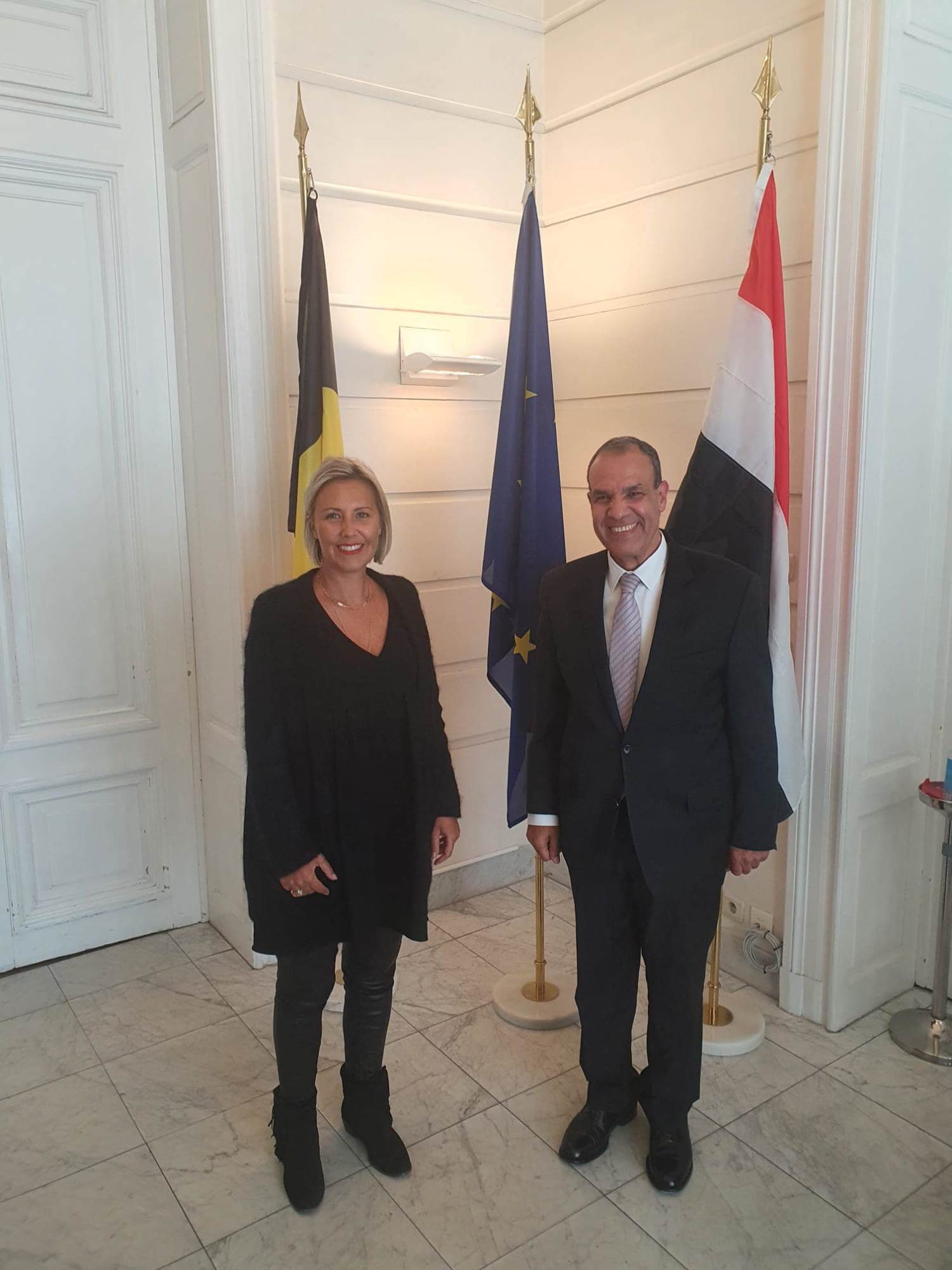 السفير المصري في بروكسل يلتقي مع وزيرة الدفاع البلجيكية