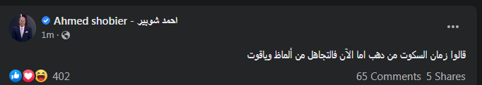 وكتب الإعلامي أحمد شوبير عبر حسابة الرسمي"فيس بوك:"قالوا زمان السكوت من دهب اما الآن فالتجاهل من ألماظ وياقوت".