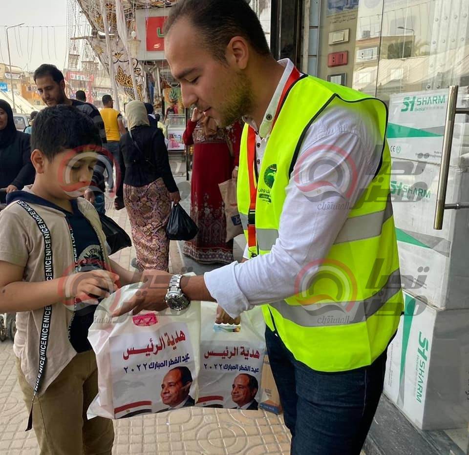 ووزع حزب مستقبل وطن، هدية الرئيس عبد الفتاح السيسى، على الأطفال والشباب والفتيات في عدد من شوارع المحافظات المختلفة على مستوى الجمهورية، بمناسبة عيد الفطر، واستقبل الأطفال والأهالي "هدية الرئيس" بترحاب شديد، حيث تنوعت ردود أفعال الأطفال على شباب الحزب الذين قدموا الهدايا لهم مع نقل تهنئة الرئيس السيسى لهم بعيد الفطر بفرحة عارمة، وأحدثت الهدايا حالة من البهجة بين المواطنين، حيث عبر أحد الأطفال عن سعادتهم بعد استلام الهدية، وتجول شباب الحزب في عددا من الشوارع والميادين المصرية في مختلف المحافظات لمشاركة المصريين فرحتهم بالعيد، وتوزيع شنط تحتوي على هدايا تذكارية مقدمة من الرئيس عبد الفتاح السيسي للمواطنين.