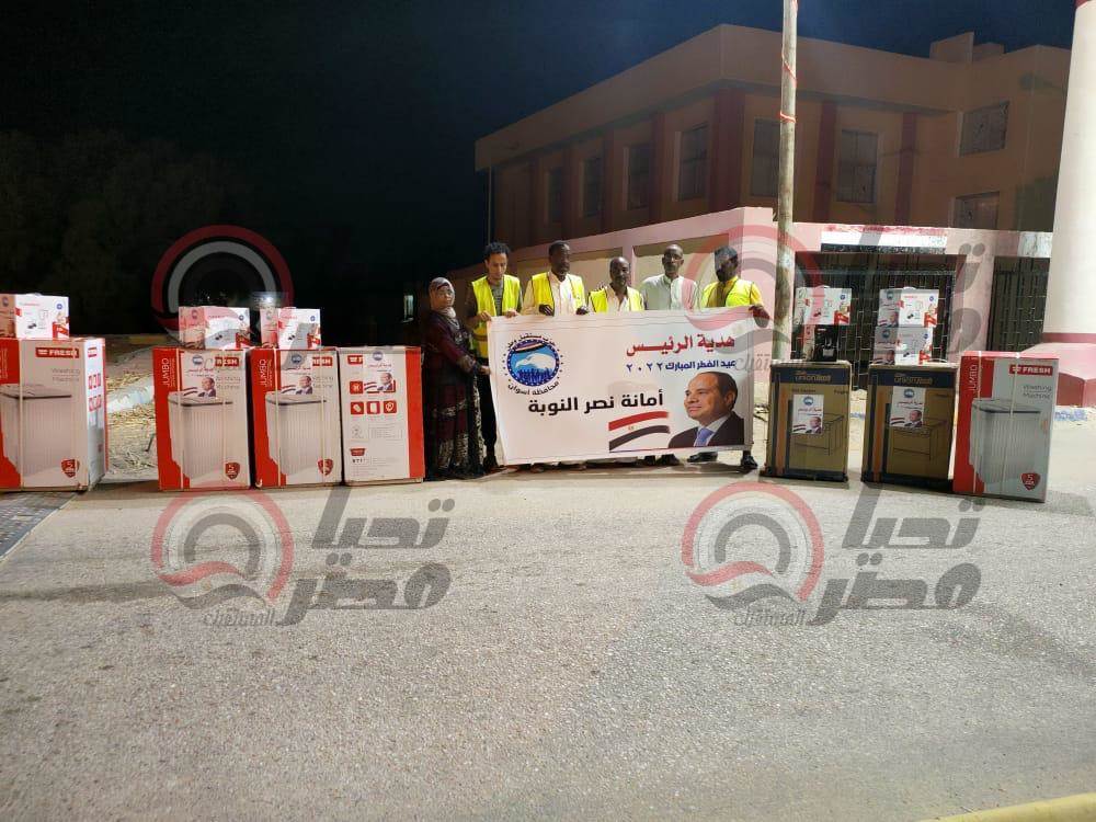 وفي محافظة أسوان، قامت أمانة مركز نصر النوبة، بتوزيع عدد من الأجهزة الكهربائية وغيرها من الأجهزة المنزلية المعمرة للعرائس المقبلات على الزواج وذلك في إطار مبادرة "هدية الرئيس"، حيث أن تلك مبادرة تؤكد على تكاتف وترابط المجتمع المصري من خلال التواصل المجتمعي للتعرف على أدق احتياجات بناتنا المقبلات على الزواج بما يحقق مبدأ التكافل الاجتماعي، وأعرب الأهالى عن سعادتهم البالغة بهذه المبادرة التي ازالت حمل ثقيل عن كاهلهم فى تجهيز بناتهم في ظل ارتفاع أسعار مستلزمات العروسة وإعادة البهجة والسرور على قلوب بناتهم ليستعدوا للزفاف عقب انتهاء شهر رمضان المبارك.