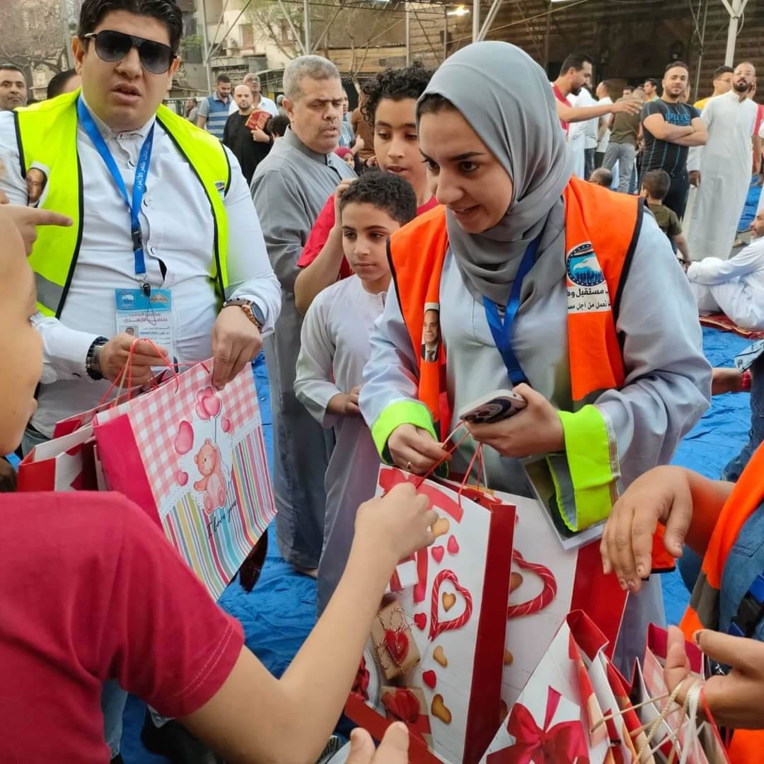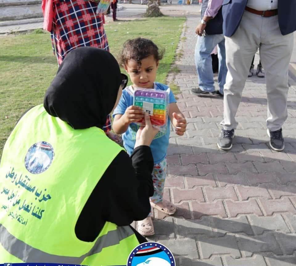 "مستقبل وطن" يوزع الهدايا والحلوى على الاطفال أمام ساحات صلاة العيد فى المحافظات
