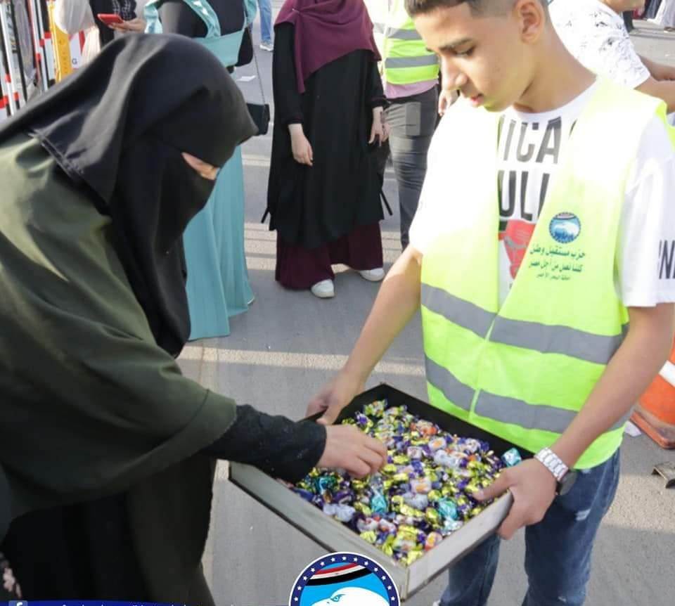 وشكل الحزب مجموعات من شباب الحزب بكافة الاقسام لتنظيم الصلاة ودخول المصلين للساحات المخصصة لصلاة العيد وتوزيع الهدايا والبالونات الملونه علي الأطفال أثناء خروجهم من الصلاة لرسم الابتسامة على وجوه الاطفال.