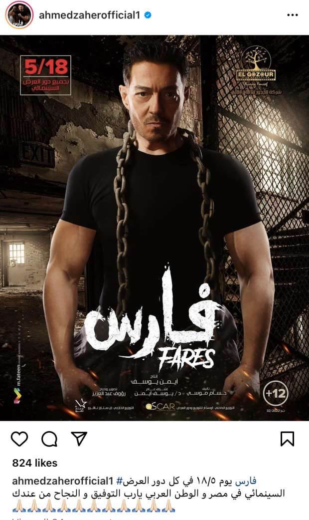 وعلق أحمد زاهر على الفيديو قائلاً: “بسم الله توكلنا على الله، البرومو الرسمي لفيلم فارس يارب يعجبكم قريبا جدا في كل دور العرض السينمائي في مصر والوطن العربي كله، فارس تأليف حسام موسى وإنتاج أيمن يوسف وإخراج رؤوف عبد العزيز”.