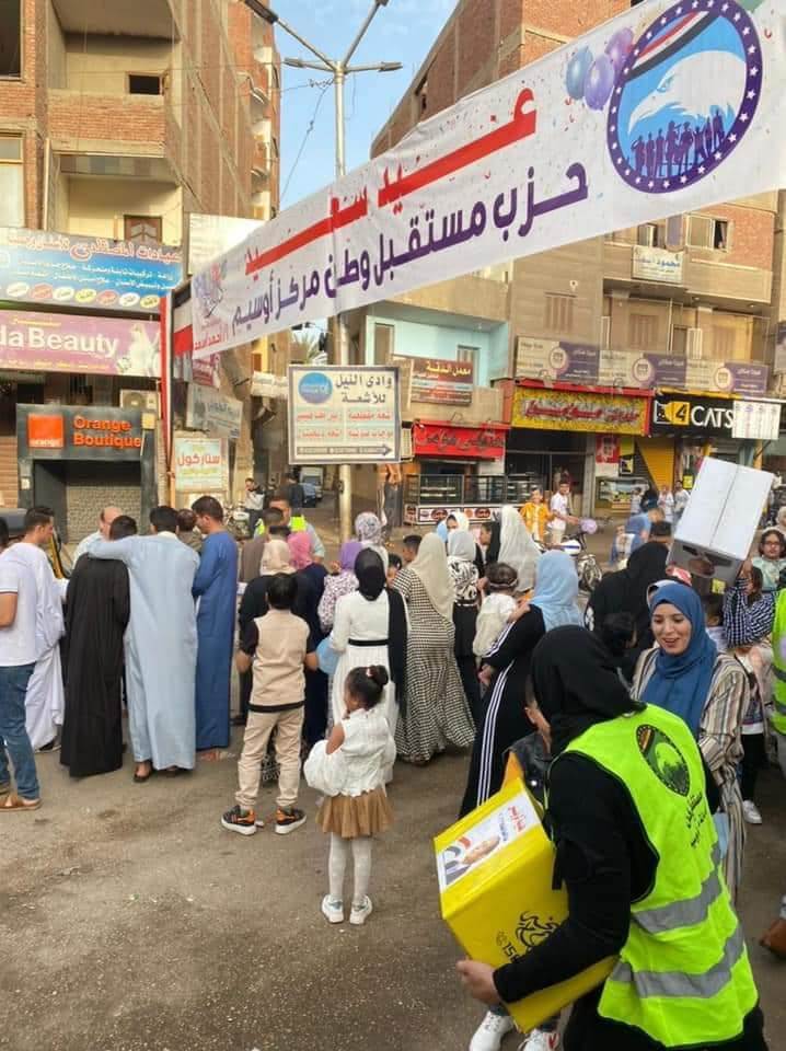 ووزعت أمانة الحزب بأوسيم برئاسة أحمد أسعد أمين الحزب بالمركز، حوالي 1200 هدية ولعب أطفال على الأطفال بشوارع أوسيم، خلال الاحتفال بعيد الفطر المبارك. وأكد "أمين الحزب"، أن الاحتفال بعيد الفطر لا يزال مستمرًا، والتواجد بالشارع في أوسيم طوال الوقت أمر محبب لأمانة الحزب، لافتاً إلى أن جميع أهالي أوسيم أصبحوا ينتظرون المزيد من فعاليات حزب مستقبل وطن لما لها من تفاعل مع المواطنين.