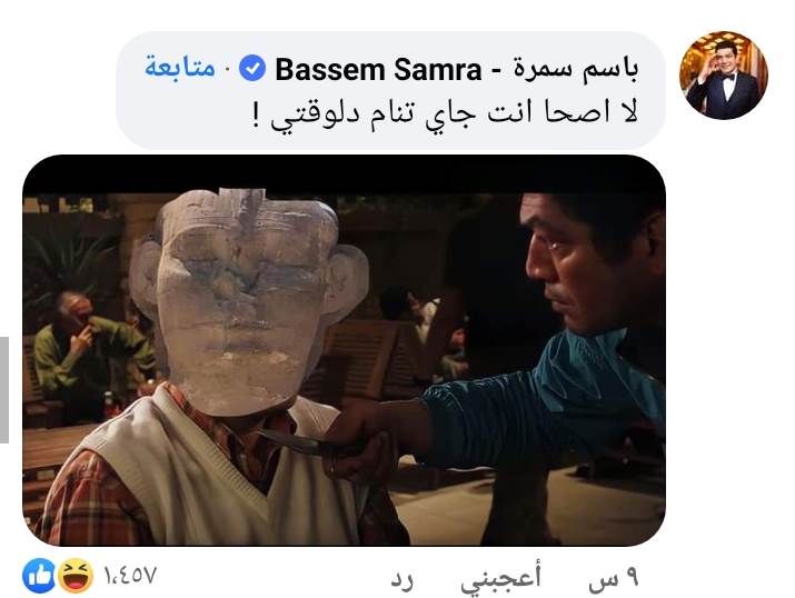 كما علق أيضا الفنان باسم سمره، على واقعة صورة أبو الهول الذي ظهر فيها نائم، قائلًا: “أنت نمت يا زميلي لا أصحا انت جاي تنام دلوقتي!”، وتفاعل الجمهور معه كما تابعوا السخرية من أبو الهول النائم في تعليقات أخرى.