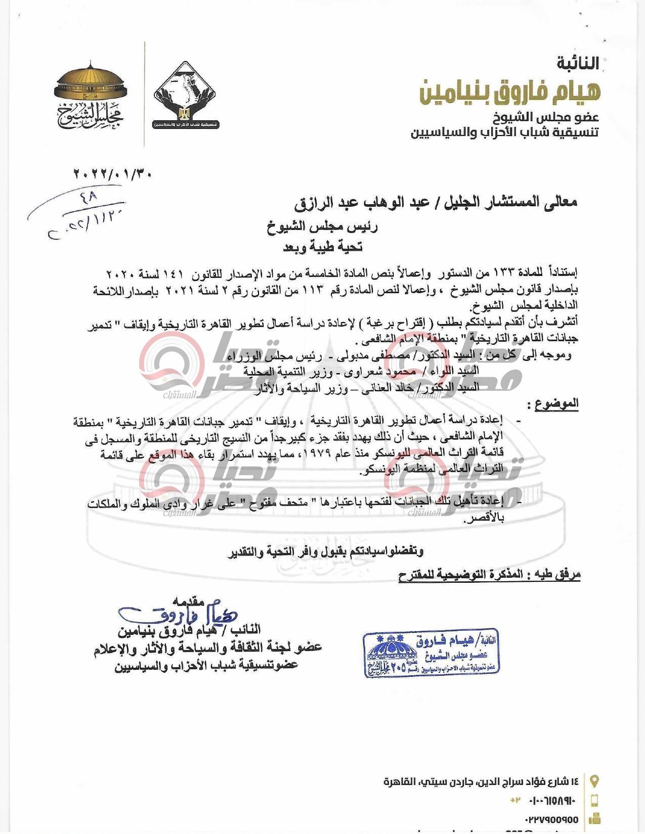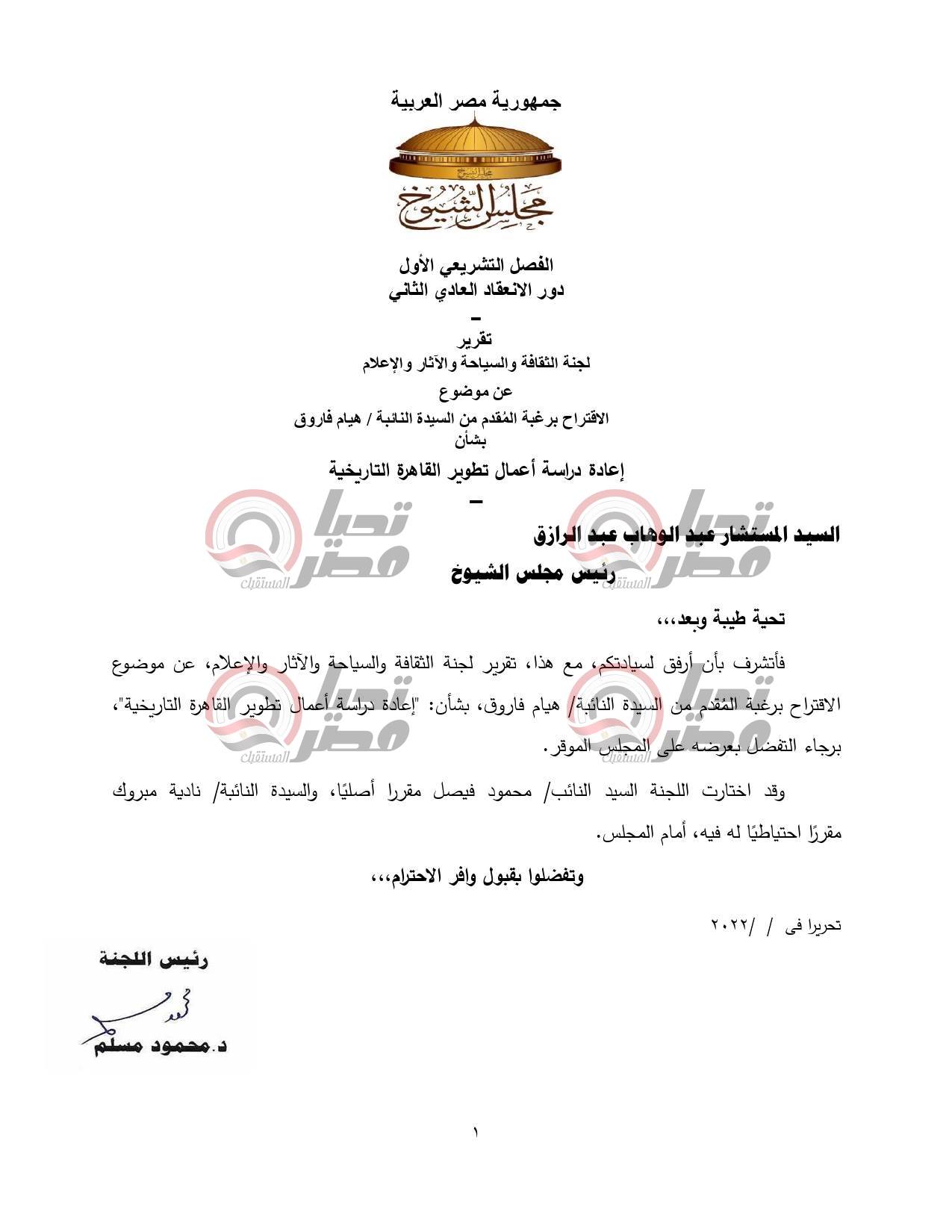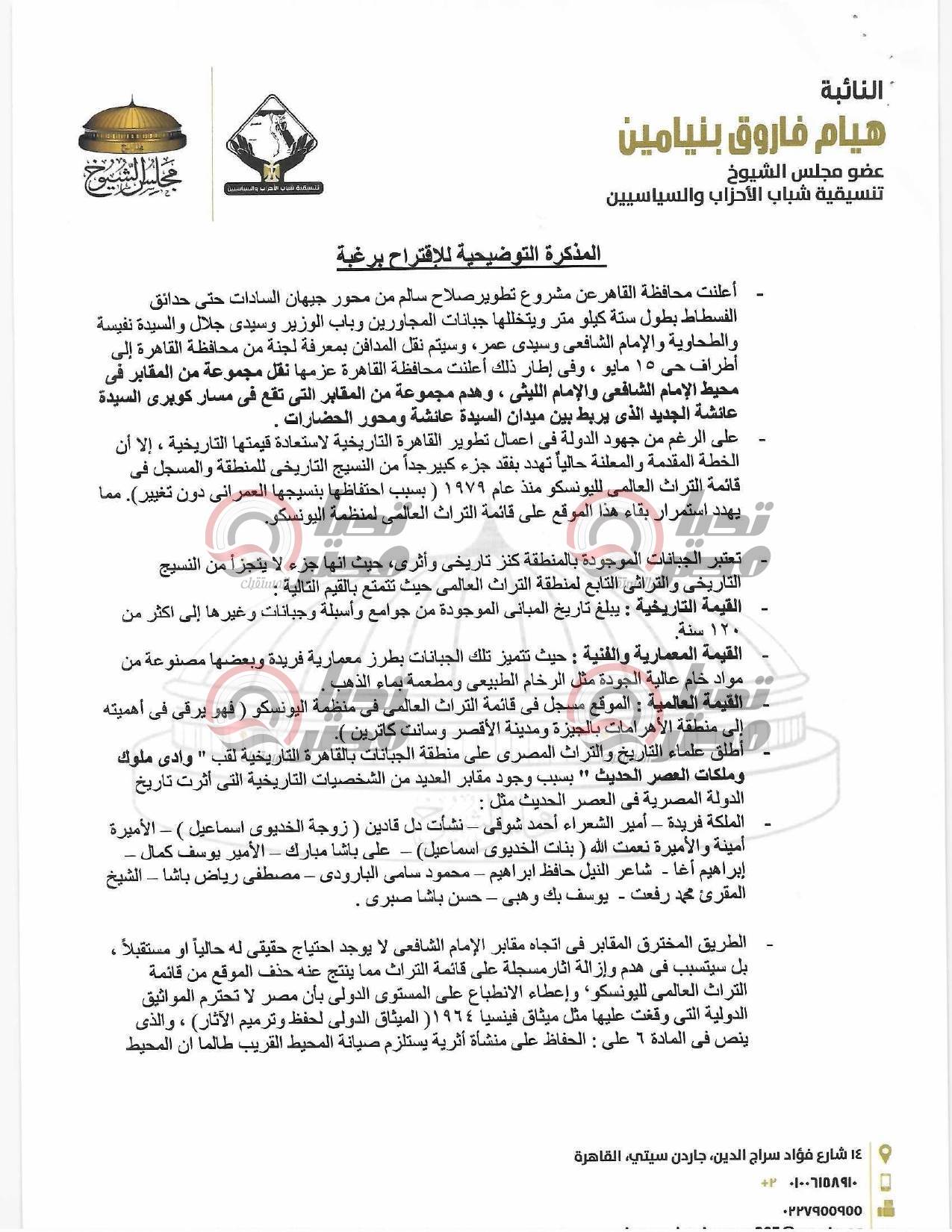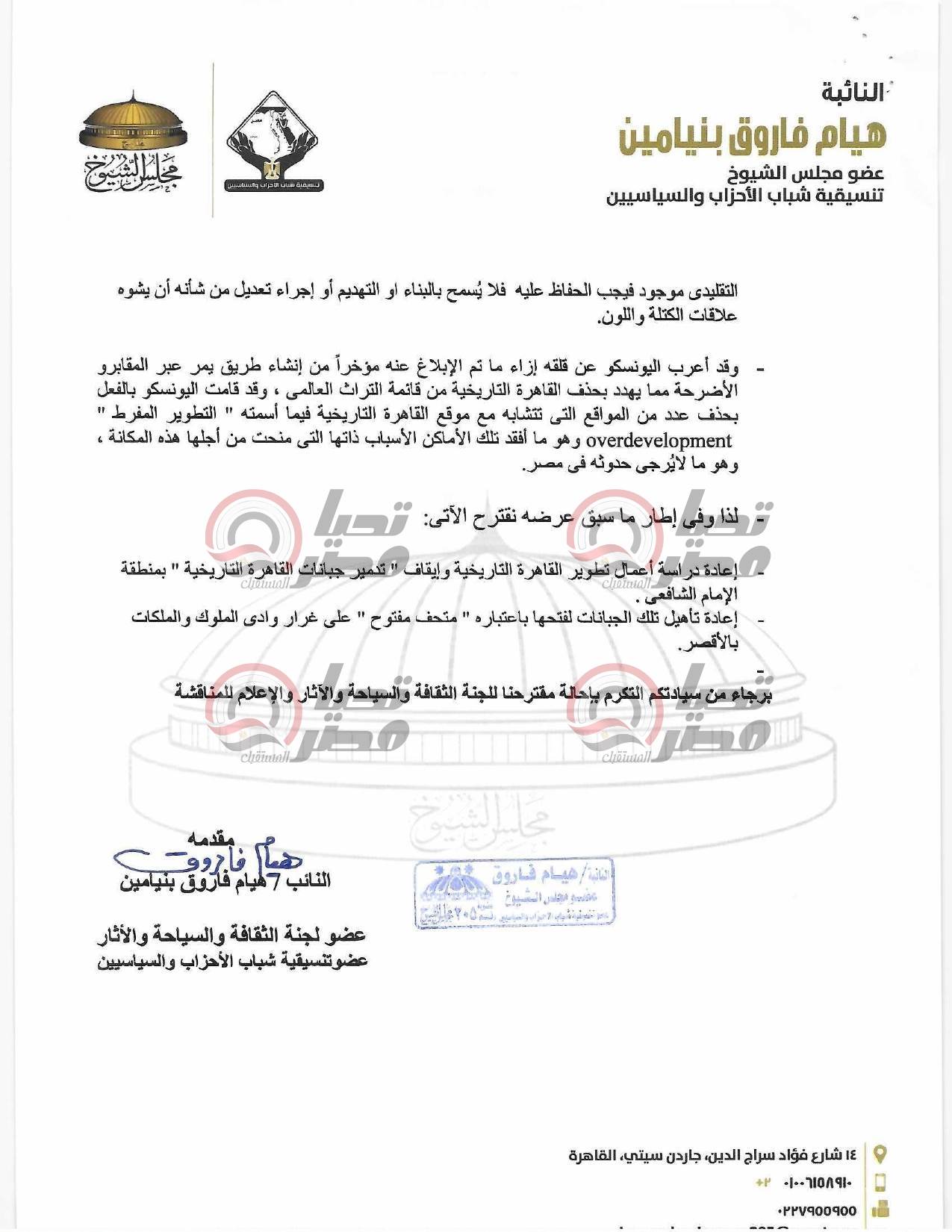 اقتراح النائبة هيام فاروق بشأن تطوير القاهرة التاريخية