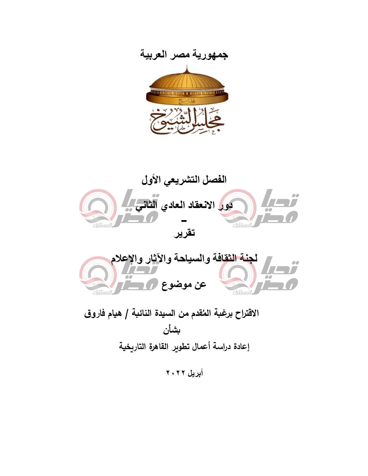 الشيوخ يحيل اقتراح النائبة هيام فاروق بشأن تطوير القاهرة التاريخية للحكومة