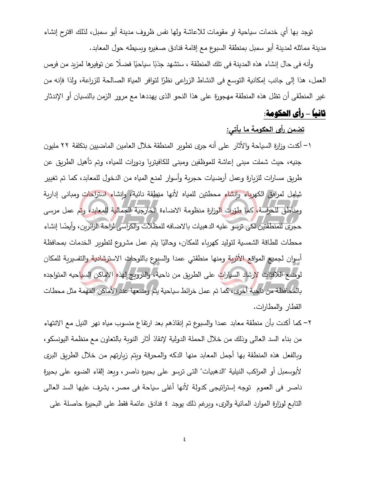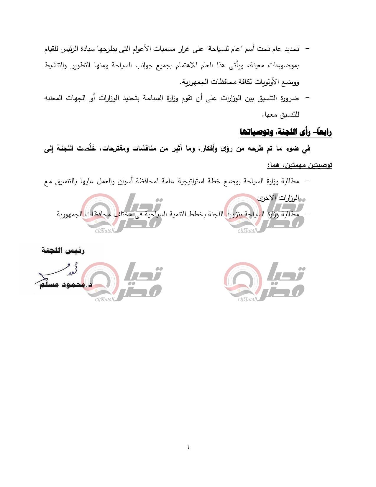 طالبت اللجنة وزارة السياحة بوضع خطة استراتيجية عامة لمحافظة أسوان والعمل عليها بالتنسيق مع الوزارات الأخرى.
