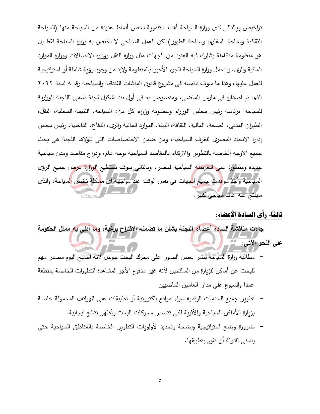 كما طالبت وزارة السياحة بتزويد اللجنة بخطط التنمية السياحية في مختلف محافظات الجمهورية.